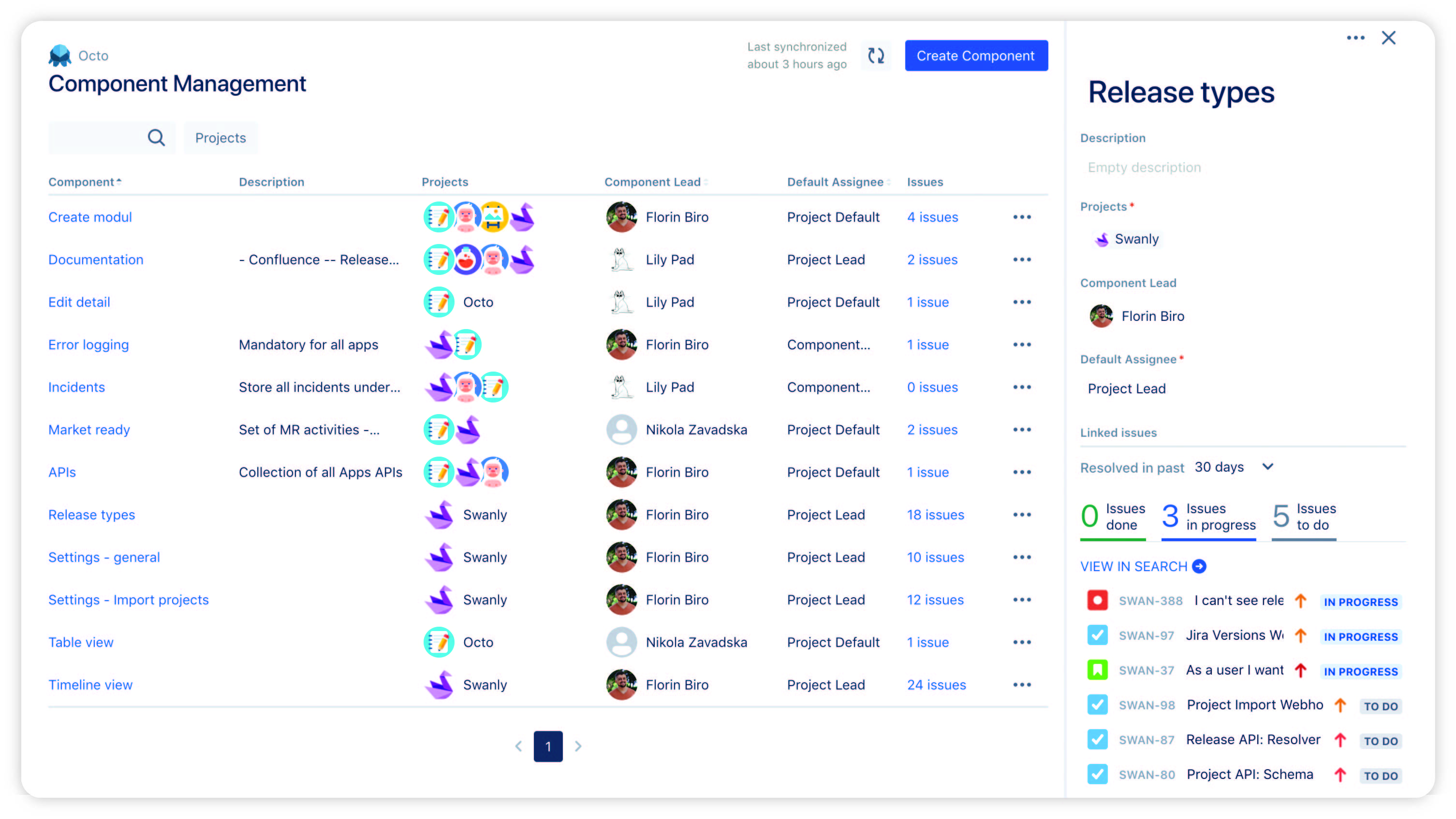 Jira Basics - Module 5: Versions & Components - Test Management The other major features in Jira that lets us group and categorise our issues are Versions and Components. Both of these features provide us with useful ways to visualise the status of our projects and the work/issues that we need to be focusing on. Each Project you define in Jira can contain many 'Versions' and many 'Components'. What exactly is a "component" in JIRA? - Atlassian Community Components can be used to group issues into smaller sub sections, like UI, API, Hardware etc. You could also use it to organize your issues based on customers, areas, functionality etc. I use it to organize tasks base on the tool, its a quick way of for example see all my tasks that I have related to Bitbucket or JIRA. How to Use Components in Jira - Modus Create To be able to add or edit components in a project, you must either be a project administrator or Jira System Administrator. Once you have access, it is a fairly straightforward process. In Jira, navigate to the project you want to update. From the sidebar, select Project Settings, then select Components. Organize your Jira issues with subcomponents - Atlassian Jira project components are generic containers for issues. Components can have component Leads: people who are automatically assigned issues with that component. Components add some structure to projects, breaking them up into features, teams, modules, subprojects, and more.