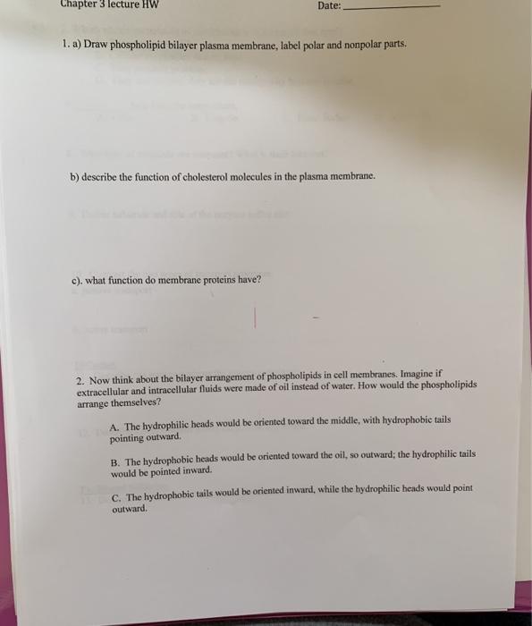 10 draw and label a phospholipid show the hydrophobic - Course Hero Label this diagram of the plasma membrane with the following terms:glycoprotein,cholesterol, hydrophilic region, hydrophobic region. Phospholipid bilayer, protein molecules. a. hydrophobic regionb.hydrophilic regionc.phospholipid bilayerd.cholesterole.protein moleculesf.protein End of preview. Want to read all 2 pages?