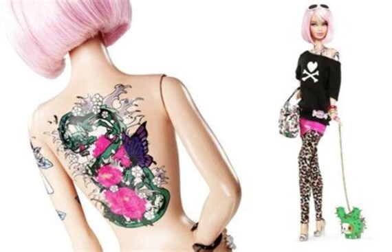 Barbie | Tokidoki - Inked Magazine - Tattoo Ideas, Artists and Models The perfect possession outdid herself. In celebration of tokidoki's 10th anniversary, the transformative toy debuted two brand new looks that turn heads-plastic and not. The newest members of The Barbie Collection are complete with purple (Platinum Label) and pink (Black Label) hair, sequin shirts and tulle skirts, and, oh yeah, tattoos.