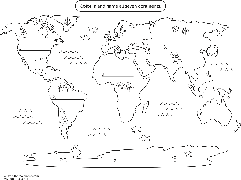 Label the Continents | Worksheet | Education.com Label the Continents. Your kindergartener or first grader will fear no map with help from this Label the Continents worksheet. With a colorful, inviting map of the world and labels for each continent at the ready, this handy map is the perfect introduction to beginning geography.