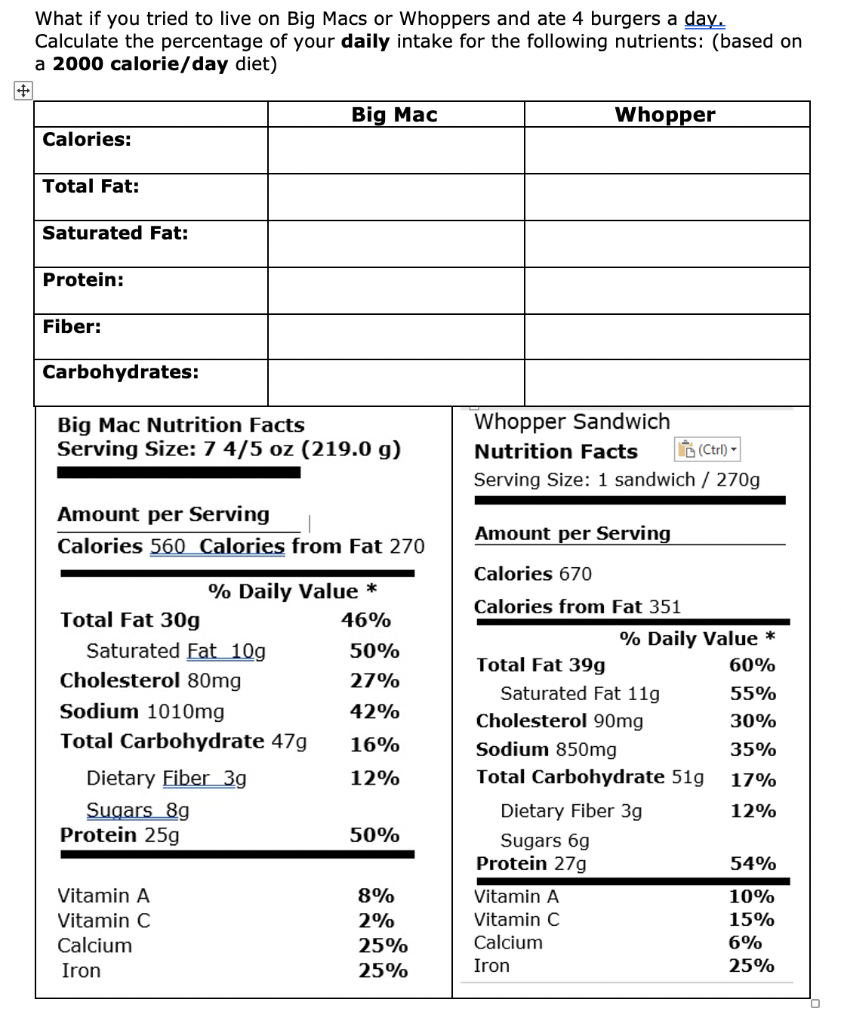 Burger King Full Menu Calories & Nutrition [2022 Update] Ham, Egg, & Cheese Croissan'Wich: 360 Calories, 19g Fat, 30g Carbs, 19g Protein. Since ham is such a lean meat, adding it to any breakfast sandwich gives it a nice protein boost without a ton of calories. In fact, this sandwich contains only 40 more calories than the egg & cheese option and has an extra 6g of protein. Big Macs and Taco Bell Burritos Found to Contain Harmful ... - Insider Toxic chemicals linked to infertility found in Big Macs and Taco Bell burritos. Researchers ordered burgers, chicken nuggets, and fries at two top fast food chains. Researchers tested burgers, burritos, and pizza from six of the top fast food chains in the US for various chemicals. They found chemicals that have been linked to reproductive ...