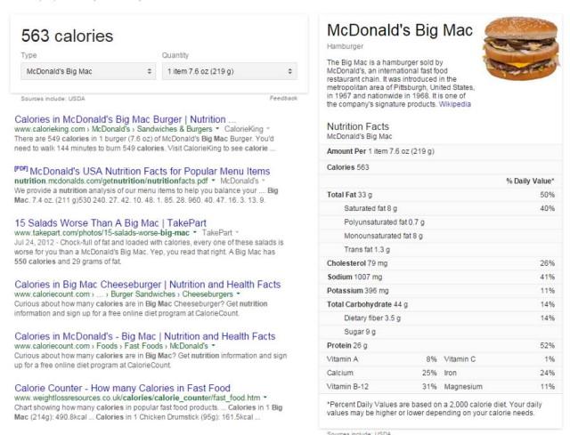 Big mac nutrition label