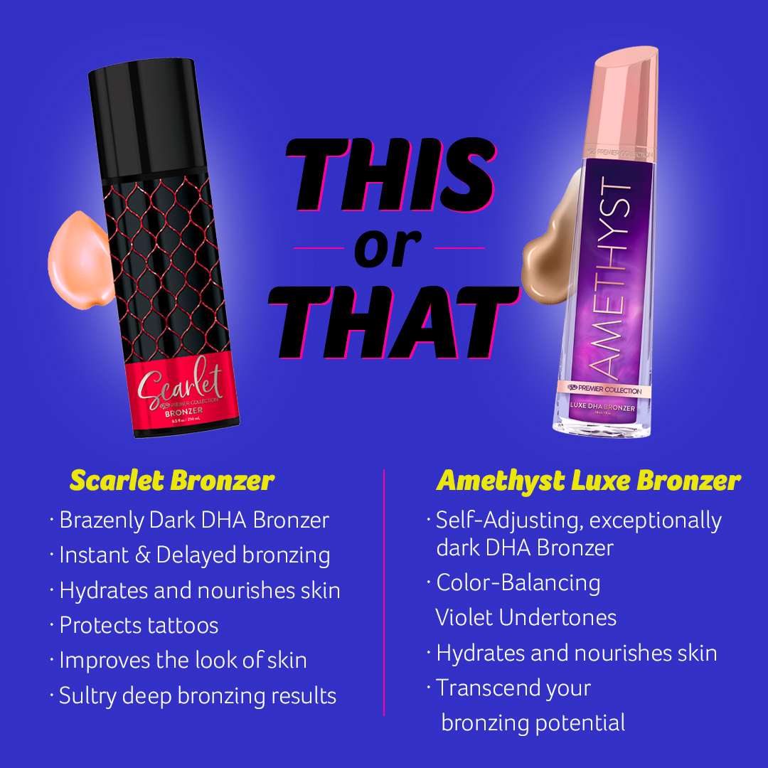 Sunbed Tanning Lotions- Maximum Skin Care, Maximum Bronzing ... Dare to unleash the seductively rich, dark bronzing power of Scarlet™, from the Premier Collection ® of extraordinary tanning and skincare products, designed exclusively by Palm Beach Tan. Unapologetically sexy and boasting fierce, edgy skincare, Scarlet works to invigorate, enhance & hydrate skin, imparting an all-over glow that seems to ...