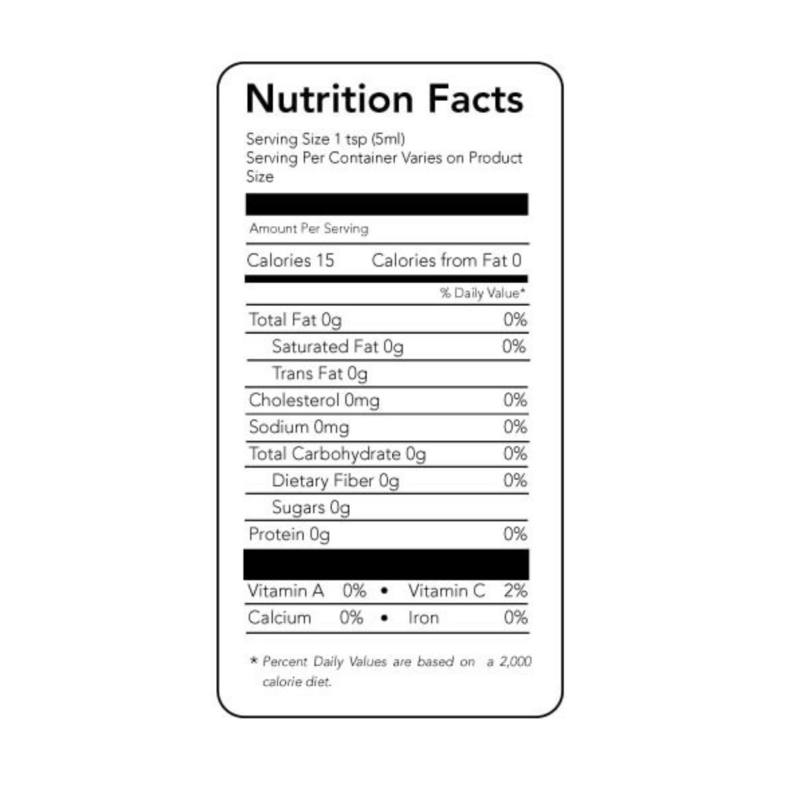 Vanilla extract nutrition label
