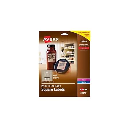 Avery Print-to-the-Edge Laser/Inkjet Specialty Labels, 2" x 2", Kraft ... Get Avery Print-to-the-Edge Laser/Inkjet Specialty Labels, 2" x 2", Kraft Brown, 12 Labels/Sheet, 25 Sheets/Pack (22846) fast and with free shipping on qualifying orders at Staples.