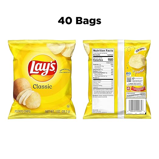 Amazon.com: lays chips Lay's Potato Chips, Sour Cream & Onion Flavor, 7.75oz Bag (Packaging May Vary) 7.75 Ounce (Pack of 1) ... Frito-Lay Sweet & Salty Snacks Variety Box, Mix of Cookies, Crackers, Chips & Nuts, 50 Sweet & Salty Care Package ,50 Count (Pack of 1) ... Extra 15% off when you subscribe Extra 15% off when you subscribe. SNAP EBT eligible ...