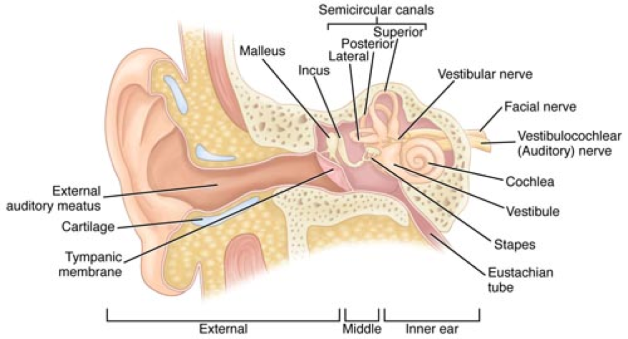 The Ear - Science Quiz - GeoGuessr Not when you use this quiz game, that is! The human ear is made up of three main parts, the outer, middle, and inner ear. Each part plays a vital role in our hearing. The outer ear gathers sound and allows it to pass through the ear canal to the eardrum. The middle ear contains three bones (the malleus, incus, and stapes) that amplify the sound.