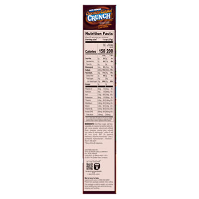 Capn Crunch Cereal Crunch Berries Allergy and Ingredient Information Nutrition Label Nutrition Facts Serving Size 0.75 cup Amount Per Serving Calories 100 Calories from Fat 15 % Daily Value* Total Fat 1.5g 2.3% Saturated Fat 1g 5% Trans Fat 0g Cholesterol 0g 0% Sodium 0.19g 7.91% Potassium 0.05g 1.42% Total Carbohydrates 22g 7.33% Dietary Fiber 1g 4% Sugars 11g Protein 1g Vitamin A 0% Vitamin C 0% Calcium 0% Iron
