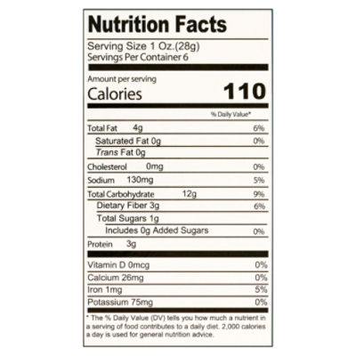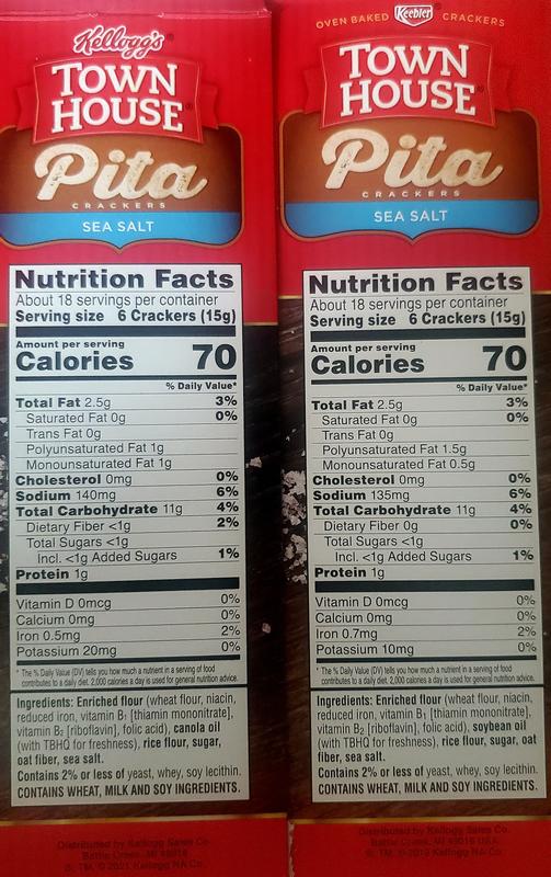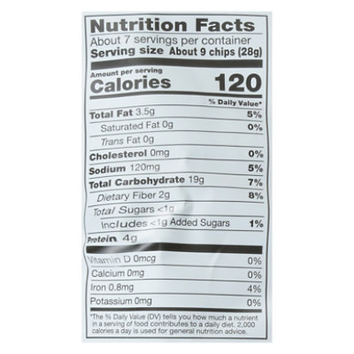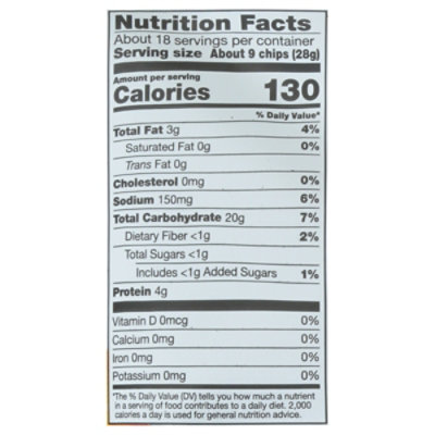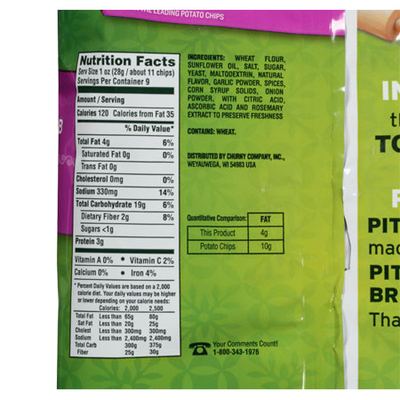 Pita chips nutrition label