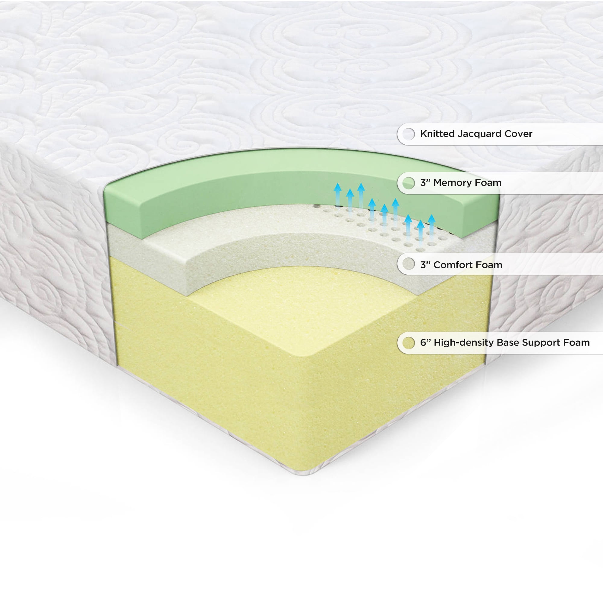 Spa Sensations by Zinus Serenity 12" Memory Foam Mattress, King The Spa Sensations by Zinus Serenity Memory Foam Mattress will help you enjoy a more comfortable, better night's sleep. With a top layer of premium memory foam, it conforms to and supports your individual body shape, relieving pressure points and helping you relax. its memory foam also features a blend of green tea and active charcoal that help neutralize odors and keep your mattress fresh.