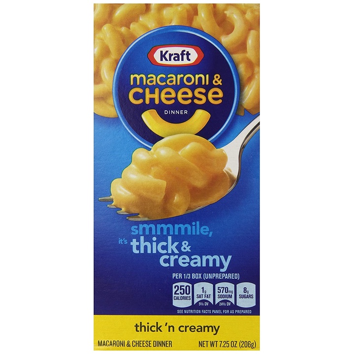 Kraft Macaroni and Cheese with Cauliflower (5.5 oz Boxes, Pack of 12 ... Kraft Macaroni and Cheese with Cauliflower Pasta is a convenient boxed dinner. Box includes pasta with cauliflower and original flavor cheese sauce mix. Contains 1/4 cup serving of vegetables per serving and no artificial flavors, preservatives or dyes. One box makes about 2 servings. Boxed macaroni and cheese is a quick and easy dinner.