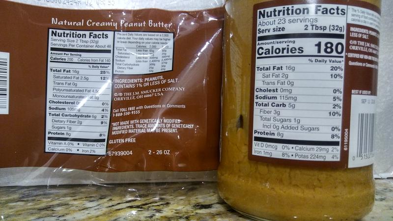 Smuckers peanut butter nutrition label
