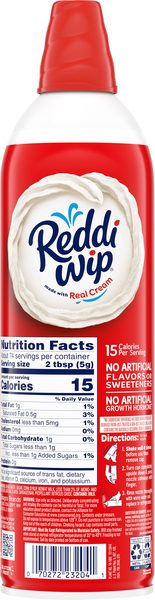 REDDI WHIP INGREDIENTS LABEL RECIPES All You Need is Food - Stevehacks Add Reddi-wip and sugar; whisk together until blended. Serve dip with fruit. Nutrition Facts : Calories 205.1 calories, CarbohydrateContent 16.3 g, CholesterolContent 48.7 mg, FatContent 14.4 g, FiberContent 1.9 g, ProteinContent 2.6 g, SaturatedFatContent 8.4 g, SodiumContent 111 mg, SugarContent 11 g REDDI WIP Fat Free Dairy Whipped Topping | Conagra Foodservice Reddi-wip Fat Free Dairy Whipped Topping is made with real cream and has no artificial flavors or sweeteners. Real cream means real flavor with 5 calories per serving. Make some noise for fat-free joy! Shake well before use. Measure Packaging Size: 12/6.5 OZ Gross Weight: 7.436 Net Weight: 4.875 Case Length: 10.813 Case Height: 8.625 Case Width: