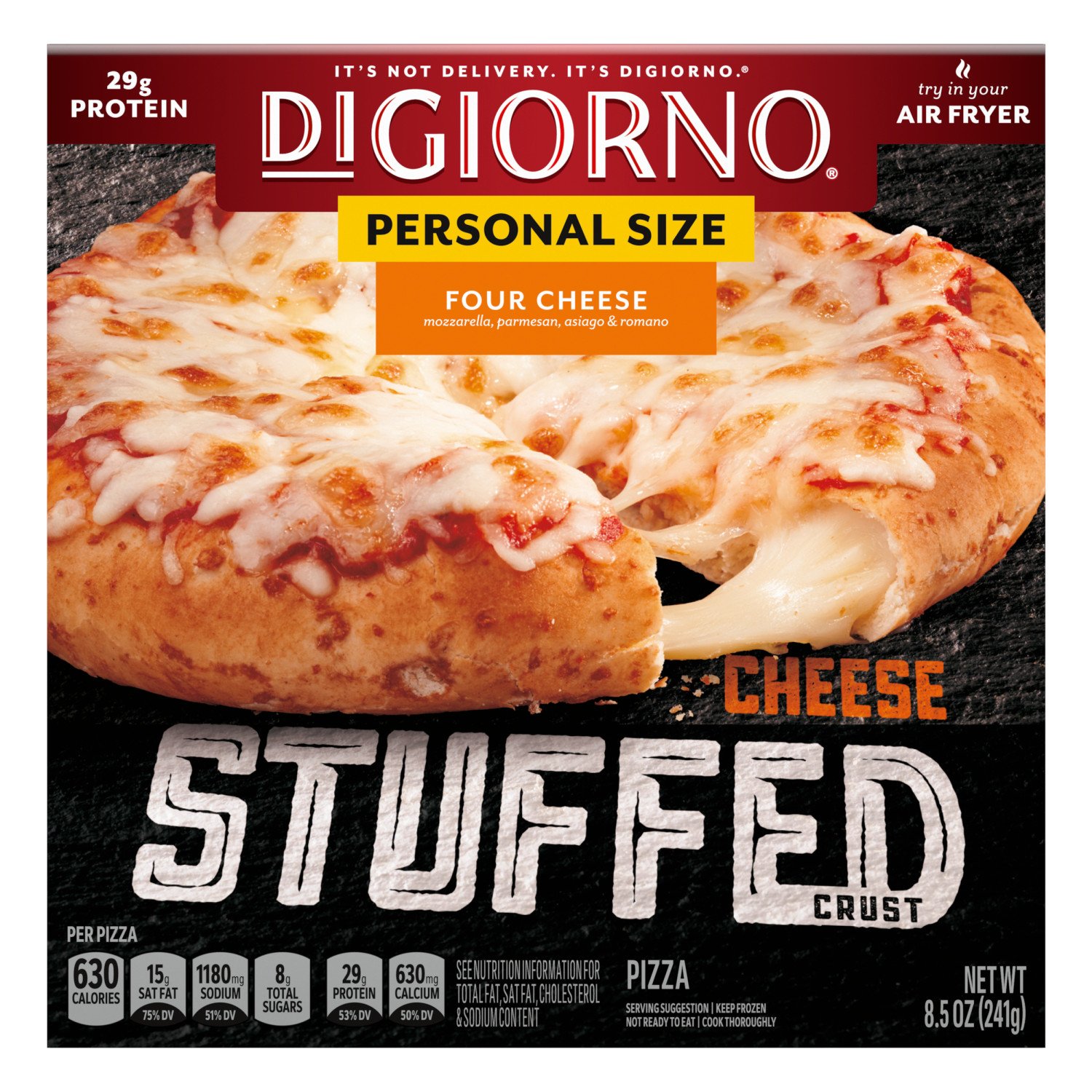 Calories in DiGiorno | CalorieKing Supreme Cheese Stuffed Crust Pizza, frozen. Pepperoni Deep Dish Pizza, frozen. Four Cheese Classic Thin Crust Pizza, frozen. Four Cheese Hand Tossed Style Crust Pizza, frozen. Five Cheese Cheese Stuffed Crust Pizza, frozen. Sausage & Pepperoni Rising Crust Pizza, frozen. Pepperoni Hand Tossed Style Crust Pizza, frozen.
